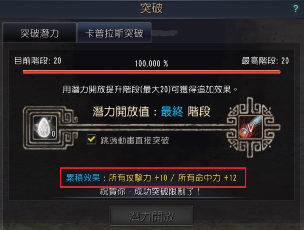 以及潛力開放達到最終的20階段後,可以必定通過下一階段的潛在力突破階段。